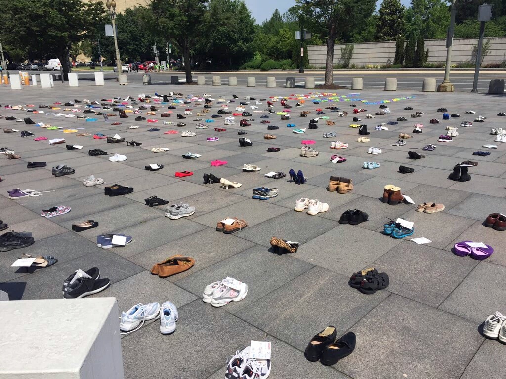 Here is another photo taken on the day of a lot of empty pairs of shoes that were sent.  This was in one of the American cities.